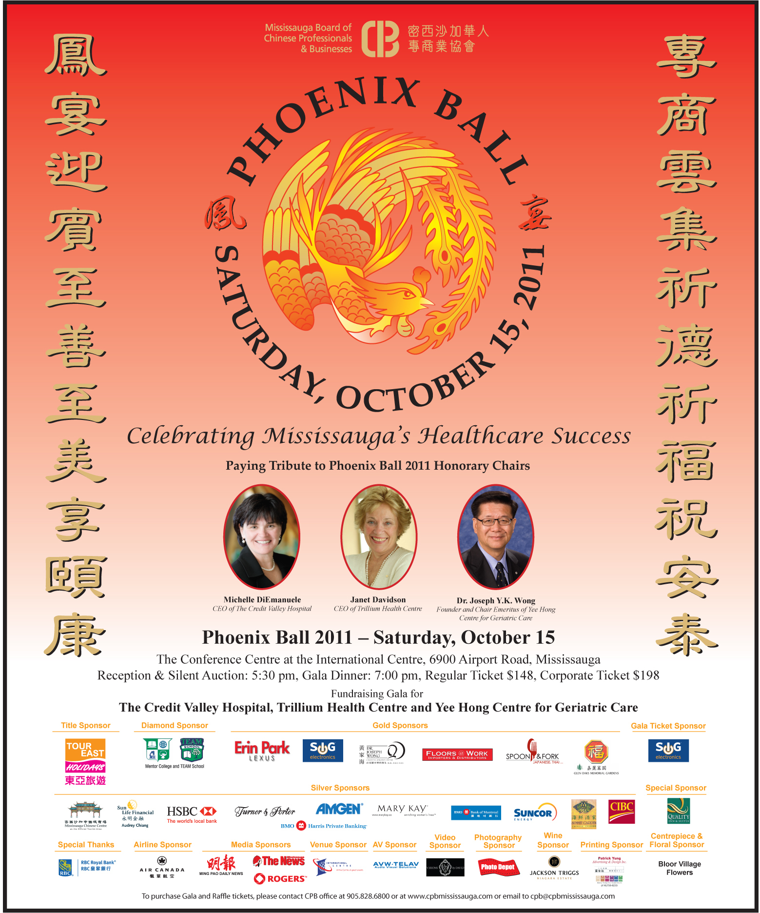 Jane Lu, Chinese-Canadian songstress Michael Ciufo, Canadian Tenor View Phoenix Ball 2011 Poster View Phoenix Ball 2011 Honorary Chairs' Bios View Phoenix Ball 2011 Live Auction Items View Phoenix Ball 2011 Raffle Draw Prizes and Winners |