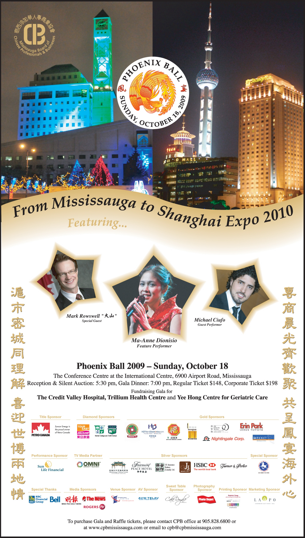 | The theme of this year’s gala is “From Mississauga to Shanghai Expo 2010”. We chose this theme to highlight and raise awareness of the Shanghai Expo within the professional and business community in the Greater Toronto Area and to promote Canada’s participation at the Expo. | ||